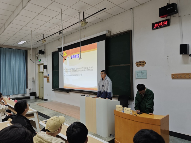 最后,郎涵光老师在宣讲会上对全体学员提出三点明确要求:一是严守纪律规矩,端正学习态度,严格遵守培训班考勤、作业等各项规章制度,杜绝迟到早退、旷课、不交作业等行为,以严肃认真的态度投入理论学习,杜绝敷衍应付、课堂分心等现象,确保培训入脑入心;二是坚定理想信念,牢记入党初心,深刻认识入党是党组织对个人的长期考验,始终保持对党的敬畏之心,铭记当下幸福生活源于党的坚强领导与全国人民的不懈奋斗,从思想深处树立为人民服务的宗旨意识;三是践行使命担当,锚定成长方向,立足985高校平台优势,将个人成长与国家发展紧密结合,在和平年代从身边小事做起,以扎实的专业素养和务实行动发挥先锋模范作用,全力向党组织靠拢,争取早日成为政治坚定、作风优良的合格共产党员。